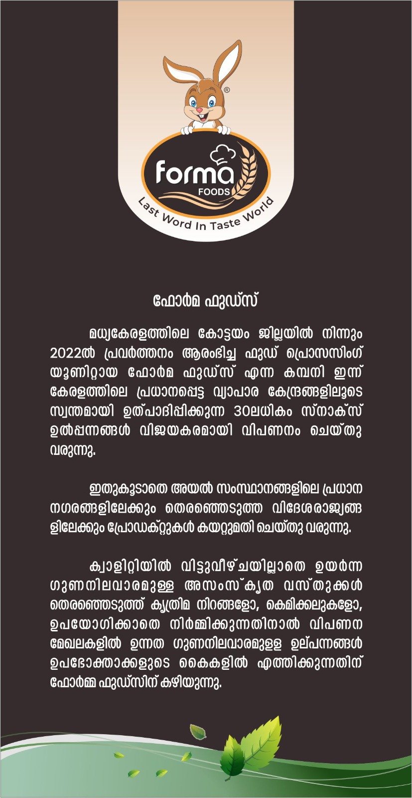 Forma Foods is a quality-driven food products company based in Kottayam district, Kerala. Operating from Chemplanickal Buildings, Plasanal, we are committed to delivering wholesome, hygienically prepared, and flavorful food products that meet the expectations of modern consumers while preserving traditional values.